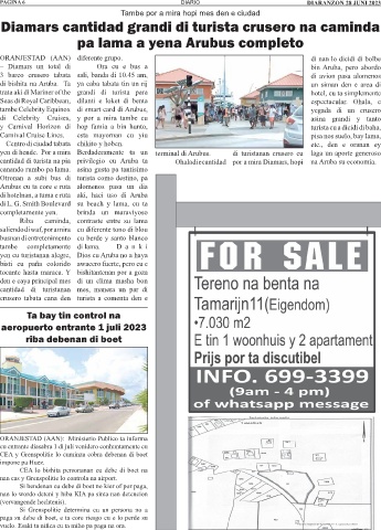 yen di hende. Por a mira Berdaderamente ta un terminal di Arubus. di turistanan crusero cu laga un aporte generoso