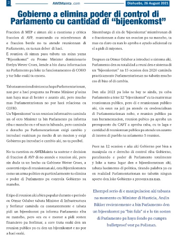 sin duda ta un hecho cu Gabinete Wever Croes, a y loke a tuma lugar den e bijeenkomstnan aki,