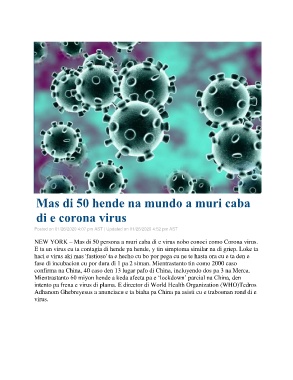 NEW YORK – Mas di 50 persona a muri caba di e virus nobo conoci como Corona virus.