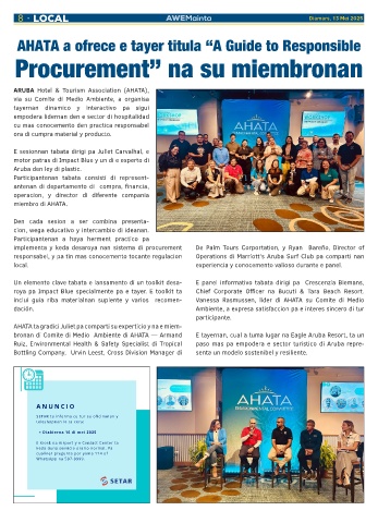 bronan di Comite di Medio Ambiente di AHATA — Armand E tayernan, cual a tuma lugar na Eagle Aruba Resort, ta un