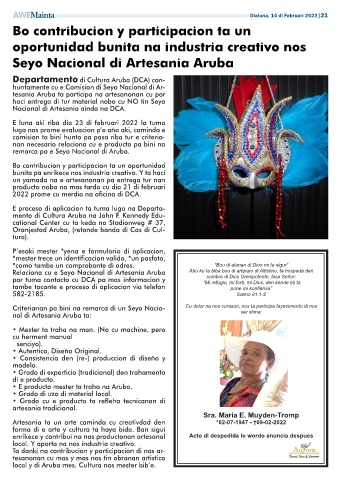 Artesania ta un arte caminda cu creativdad den *02-07-1947 - †09-02-2022