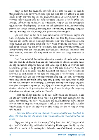 bình, ổn định lâu dài cho phát triển đất nước được bảo đảm. Thế trận quốc phòng