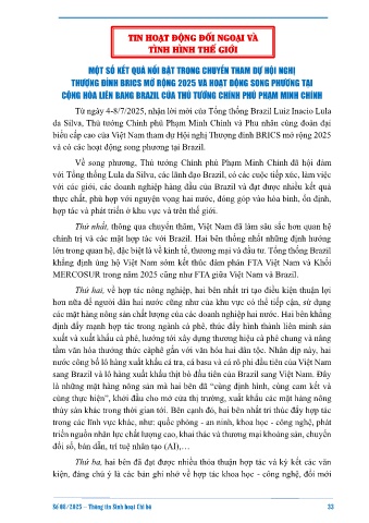 Từ ngày 4-8/7/2025, nhận lời mời của Tổng thống Brazil Luiz Inacio Lula