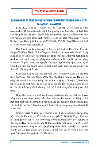 XÃ HƯNG LONG TỔ CHỨC HỌP MẶT KỶ NIỆM 78 NĂM NGÀY THƯƠNG BINH -LIỆT SĨ