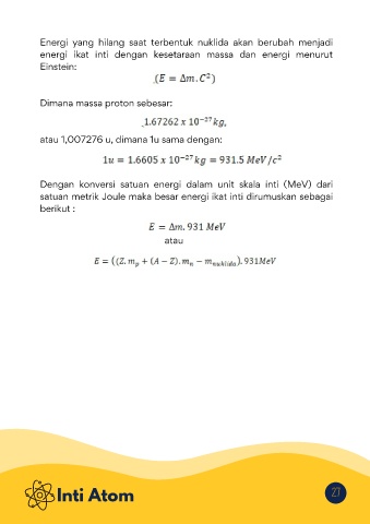 satuan metrik Joule maka besar energi ikat inti dirumuskan sebagai