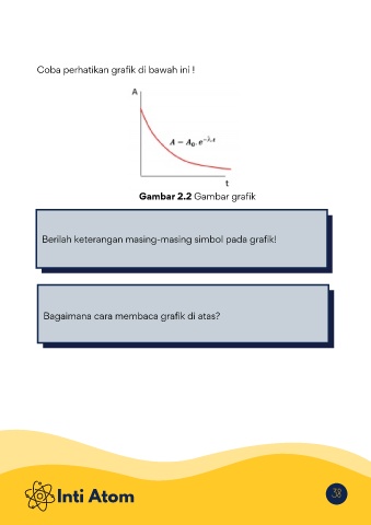 Coba perhatikan grafik di bawah ini ! Gambar 2.2 Gambar grafik Berilah keterangan masing-masing simbol pada grafik! Bagaimana cara membaca grafik di atas? Inti Atom 38