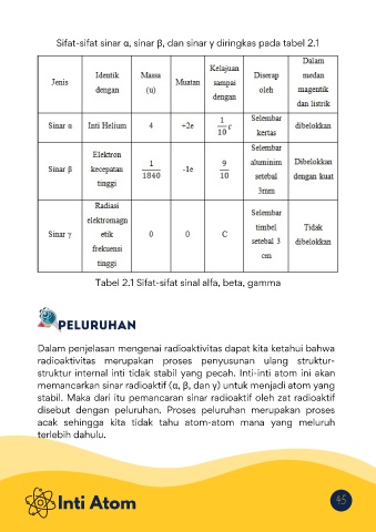 Sifat-sifat sinar α, sinar β, dan sinar γ diringkas pada tabel 2.1