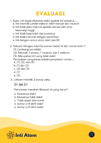 1. Suatu inti dapat dikatakan stabil apabila inti tersebut……