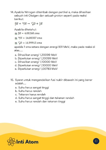 14. Apabila Nitrogen ditembak dengan partikel α, maka dihasilkan