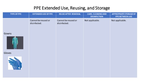 TYPE OF PPE EXTENDED USE OF PPE REUSE AFTER REMOVAL CARE, CLEANING AND APPROPRIATE STORAGE OF