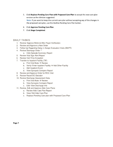 5. Click Replace Pending Care Plan with Proposed Care Plan to accept the new care plan