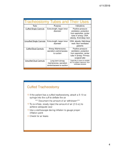 Cuffed Single Cannula Extra length, larger inner Positive pressure