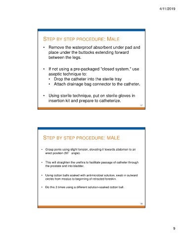 • Grasp penis using slight tension, elevating it towards abdomen to an