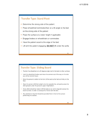 Place wheelchair/commode/chair at a 45 angle to the bed