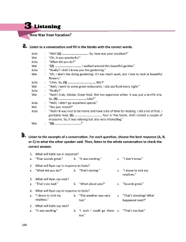 a. Listen to a conversation and fill in the blanks with the correct words.