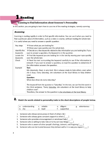 In this section, you are going to learn how to use one of the reading strategies, namely scanning.