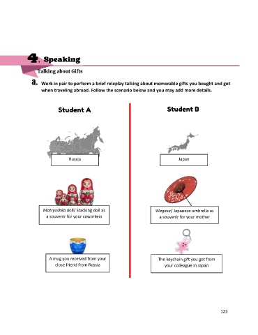 a. Work in pair to perform a brief roleplay talking about memorable gifts you bought and got
