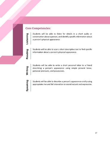Students will be able to describe a person’s appearance orally using