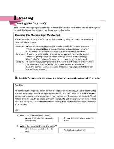 a. Read the following note and answer the following questions by giving a tick (√) in the box.