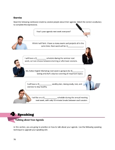 In this section, you are going to practice on how to talk about your agenda. Use the following speaking