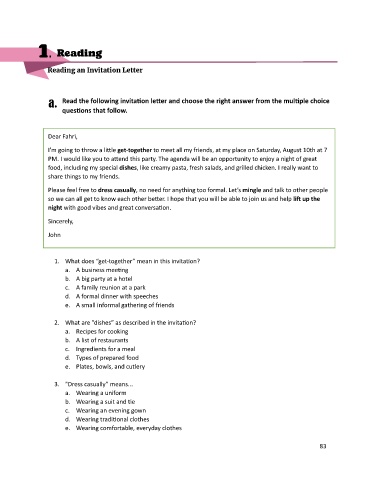 a. Read the following invitation letter and choose the right answer from the multiple choice
