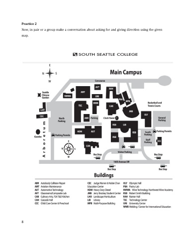 Practice 2 Now, in pair or a group make a conversation about asking for and giving direction using the given map. 8