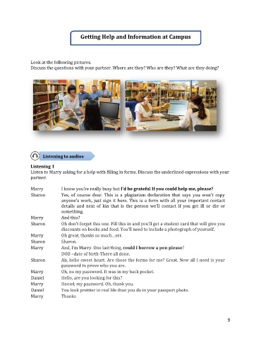 Listen to Marry asking for a help with filling in forms. Discuss the underlined expressions with your