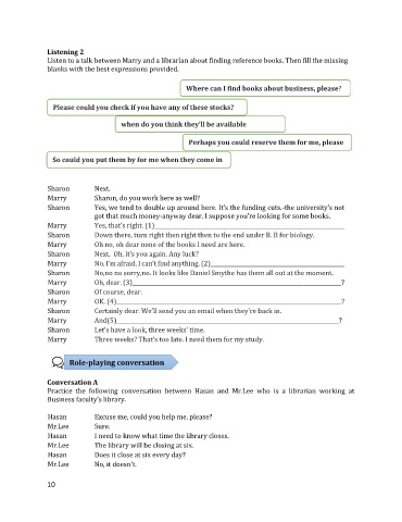 Practice the following conversation between Hasan and Mr.Lee who is a librarian working at
