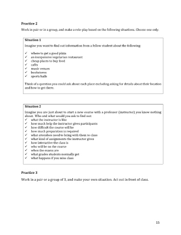 Work in a pair or a group of 3, and make your own situation. Act out in front of class.