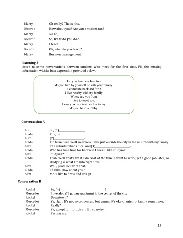 Listen to some conversations between students who meet for the first time. Fill the missing