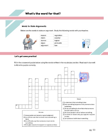 Fill in the crossword puzzle below using the words written in the vocabulary section. Read each clue well