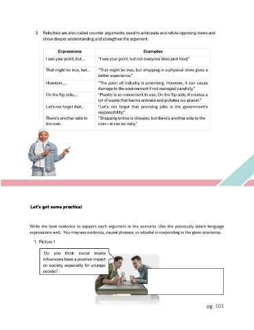 expressions well. You may use evidence, causal phrases, or rebuttal in responding to the given scenarios.