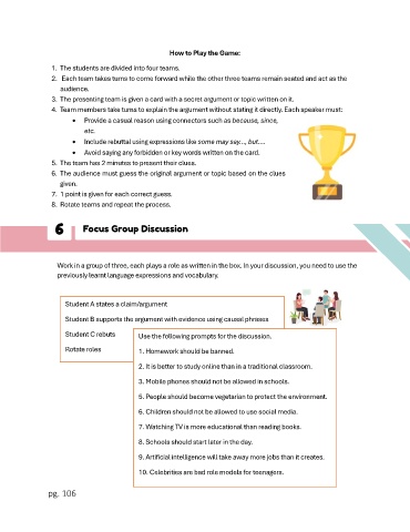 4. Team members take turns to explain the argument without stating it directly. Each speaker must: