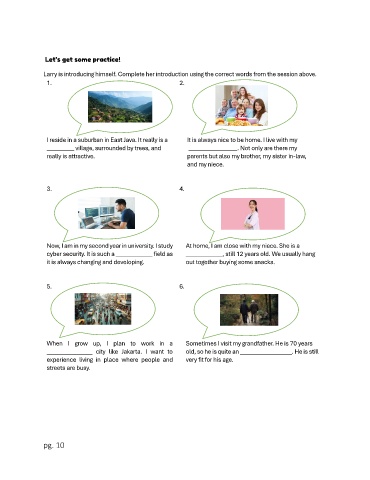 Larry is introducing himself. Complete her introduction using the correct words from the session above.