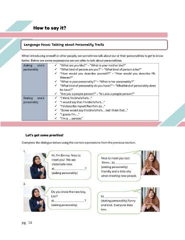 When introducing oneself or other people, we sometimes talk about our or their personalities to get to know