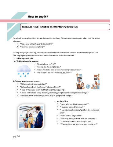 The language expressions below are used to initiate and maintain small talk.
