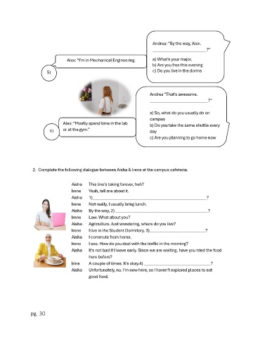 2. Complete the following dialogue between Aisha & Irene at the campus cafeteria.