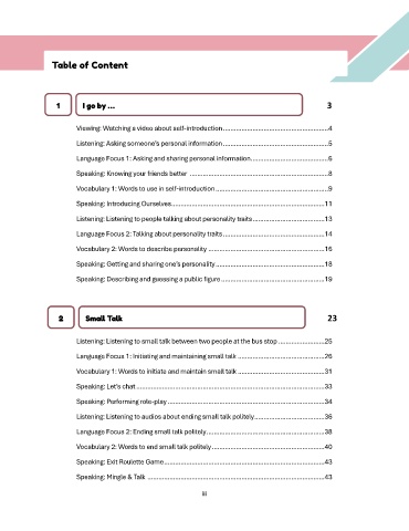 Language Focus 1: Initiating and maintaining small talk  ...............................................26