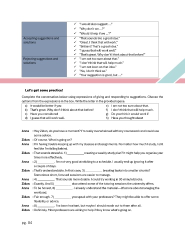 Complete the conversation below using expressions of giving and responding to suggestions. Choose the