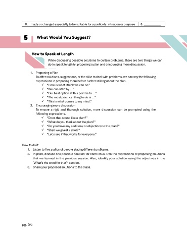 8. made or changed especially to be suitable for a particular situation or purpose 8. ___________