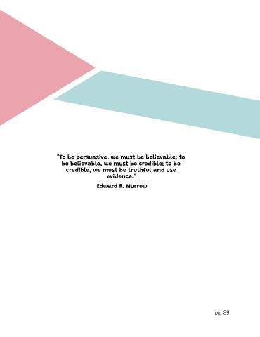 "To be persuasive, we must be believable; to be believable, we must be credible; to be credible, we must be truthful and use evidence." Edward R. Murrow pg. 89
