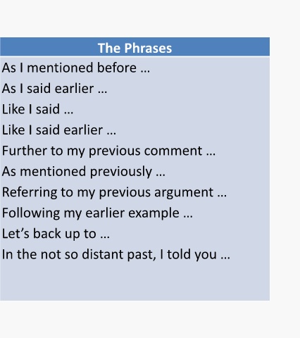 referring back to something that has been As I mentioned before …