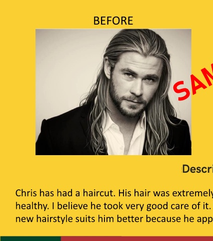 Chris has had a haircut. His hair was extremely long before, but it looked smooth, thick, and