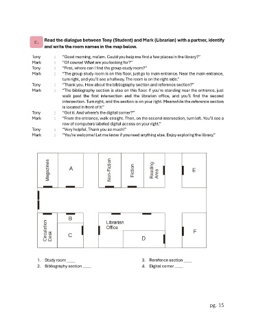 c. Read the dialogue between Tony (Student) and Mark (Librarian) with a partner, identify