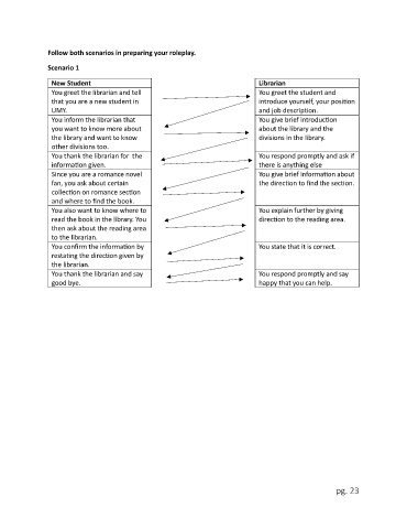 You inform the librarian that                                 You give brief introduction