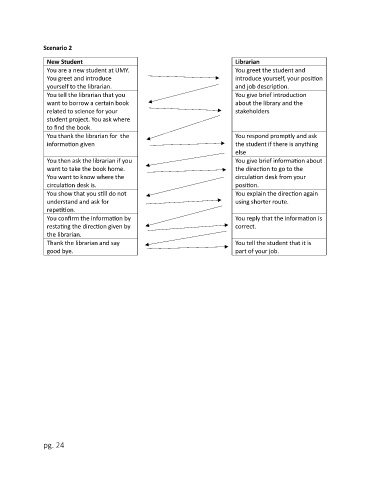 You then ask the librarian if you                             You give brief information about