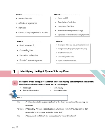 Read parts of this dialogue of a librarian (Mr. Seno) helping a student (Khin) with a form.