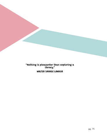“Nothing is pleasanter than exploring a library.” WALTER SAVAGE LANDOR pg. 75
