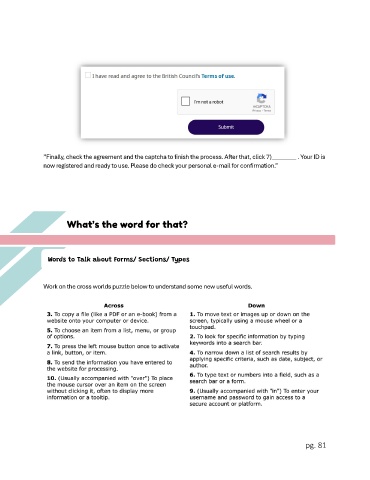 ”Finally, check the agreement and the captcha to finish the process. After that, click 7)________ . Your ID is