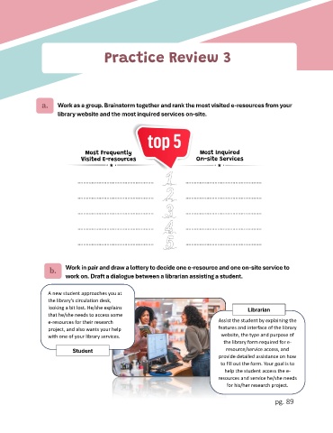 b. Work in pair and draw a lottery to decide one e-resource and one on-site service to